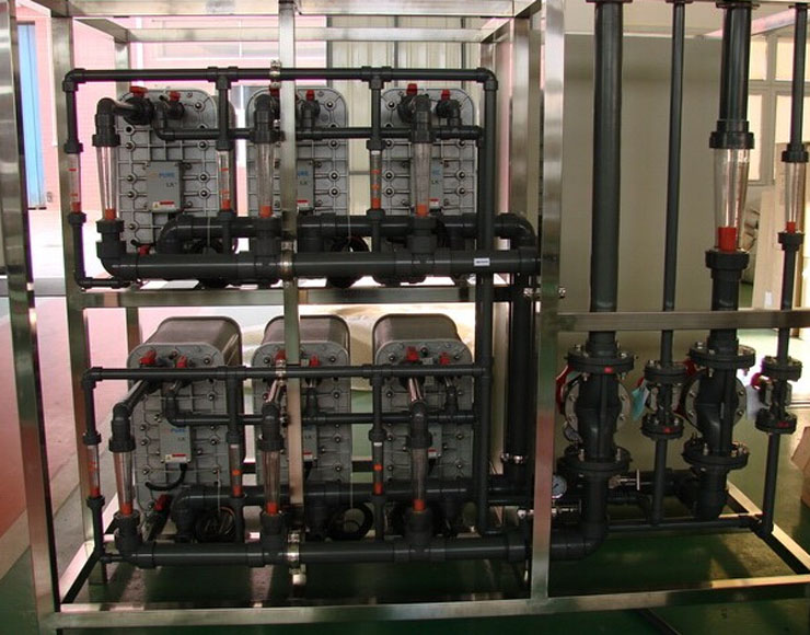 電去離子Electrodeionization,簡稱EDI,又稱連續電解除鹽技術(shù),它科學地將電滲析技術和離子交換技術融為一體,通過陰(yīn)、陽離子的選(xuǎn)擇透過作用以及離子(zǐ)交換(huàn)樹脂對水中離(lí)子的交換作用,在電場的作用(yòng)下實現水中離子的定向遷移,從而達到(dào)水的(de)深度淨(jìng)化除鹽(yán),並通過水電解產生的氫離子和氫(qīng)氧根(gēn)離子對裝填樹脂進行連續再生,因此EDI製水過程不需酸、堿化學藥品再生即可連續製取高品質超純水,它具有(yǒu)技術先進、結構緊(jǐn)湊、操作簡便的優點,可廣泛應用於電力、電子、醫藥、化(huà)工、食品和實驗室領域,是水(shuǐ)處理技術的綠色革命;